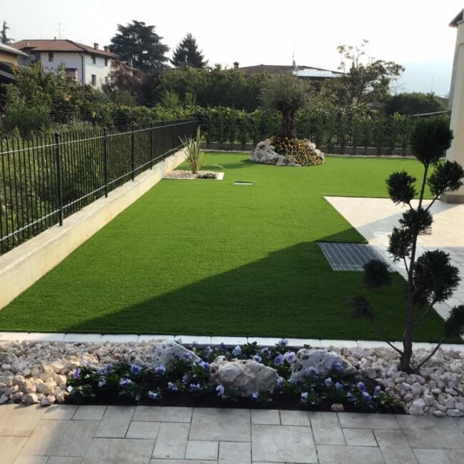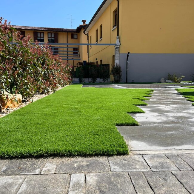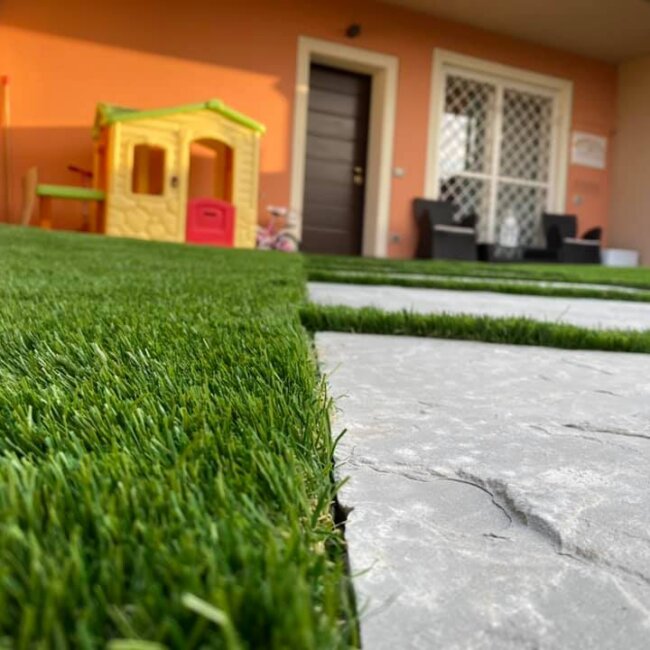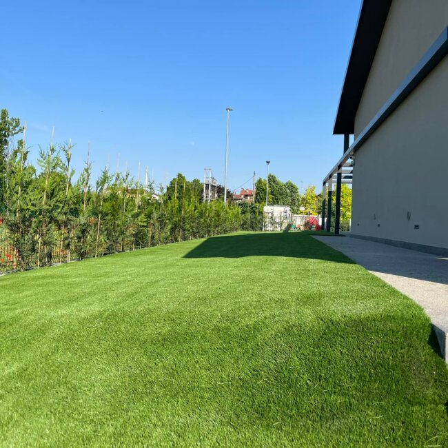 Prato sintetico Made in Italy, con marcatura CE e materiali progettati per durare nel tempo. Resistente a raggi UV, intemperie e usura, garantisce qualità, sicurezza e un aspetto sempre curato. Sicura per bambini e animali, realizzata con materiali certificati e atossici.